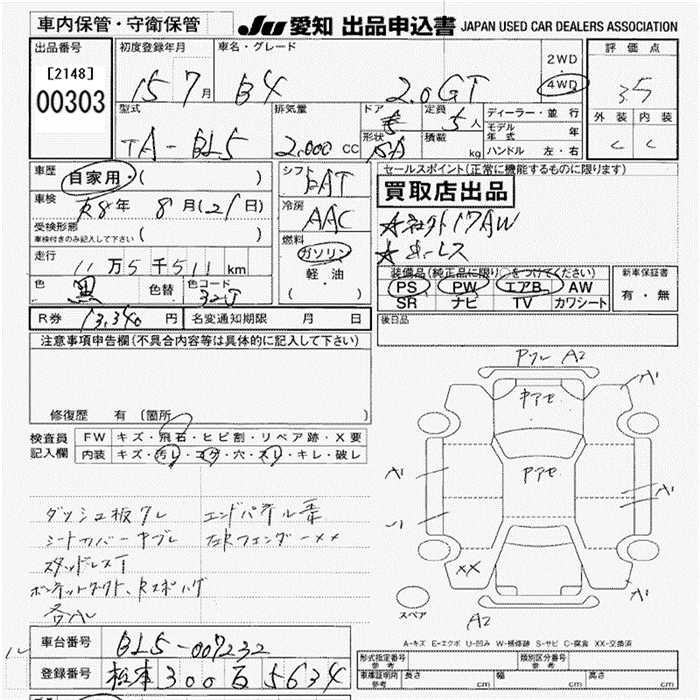 SUBARU LEGACY B4 - лот 303