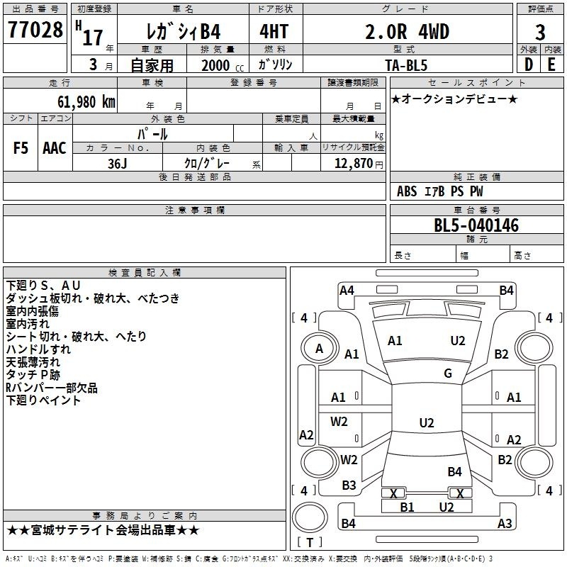 SUBARU LEGACY B4 - лот 77028