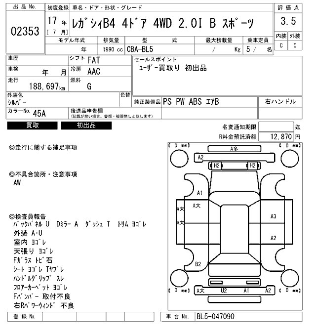SUBARU LEGACY B4 - лот 2353