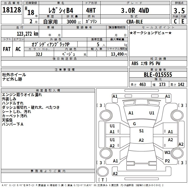 SUBARU LEGACY B4 - лот 18128