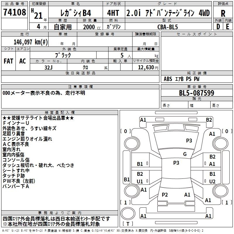 Все аукционы SUBARU LEGACY B4
