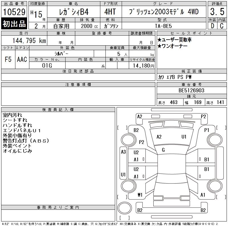 SUBARU LEGACY B4 - лот 10529