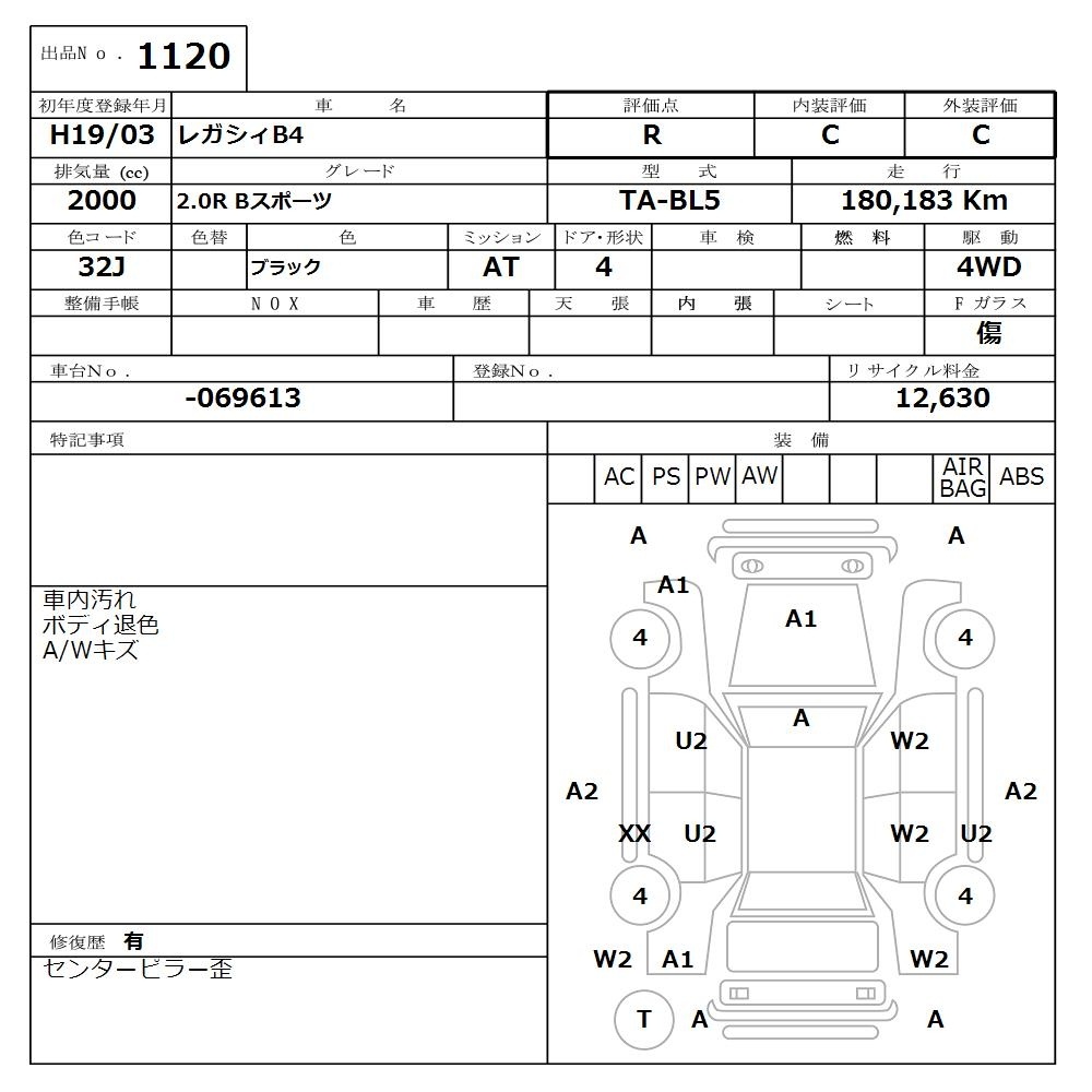 SUBARU LEGACY B4 - лот 1120