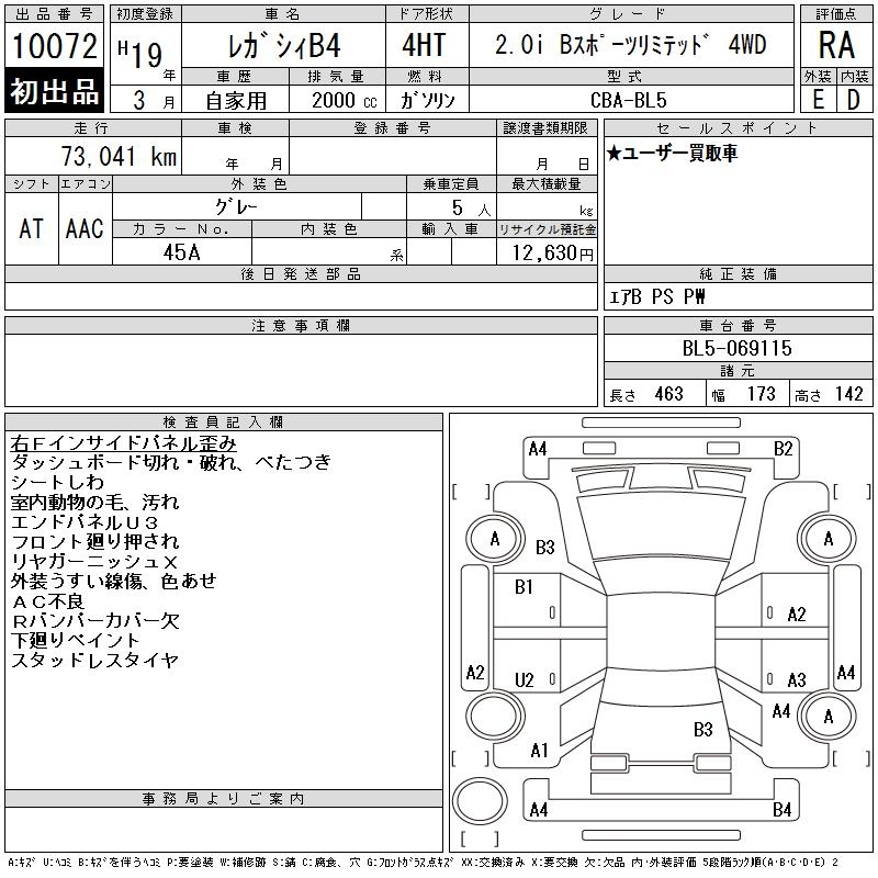 SUBARU LEGACY B4 - лот 10072