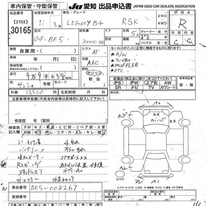 SUBARU LEGACY B4 - лот 30165