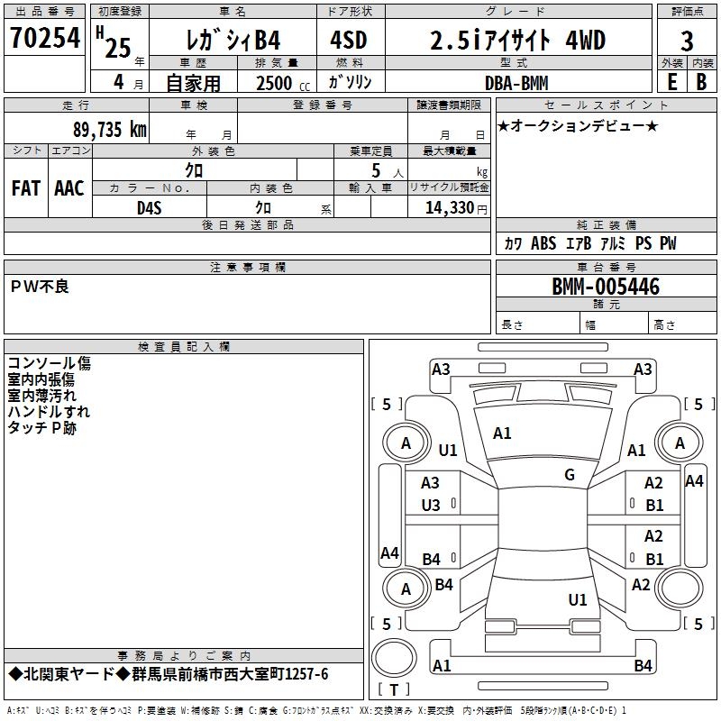 SUBARU LEGACY B4 - лот 70254