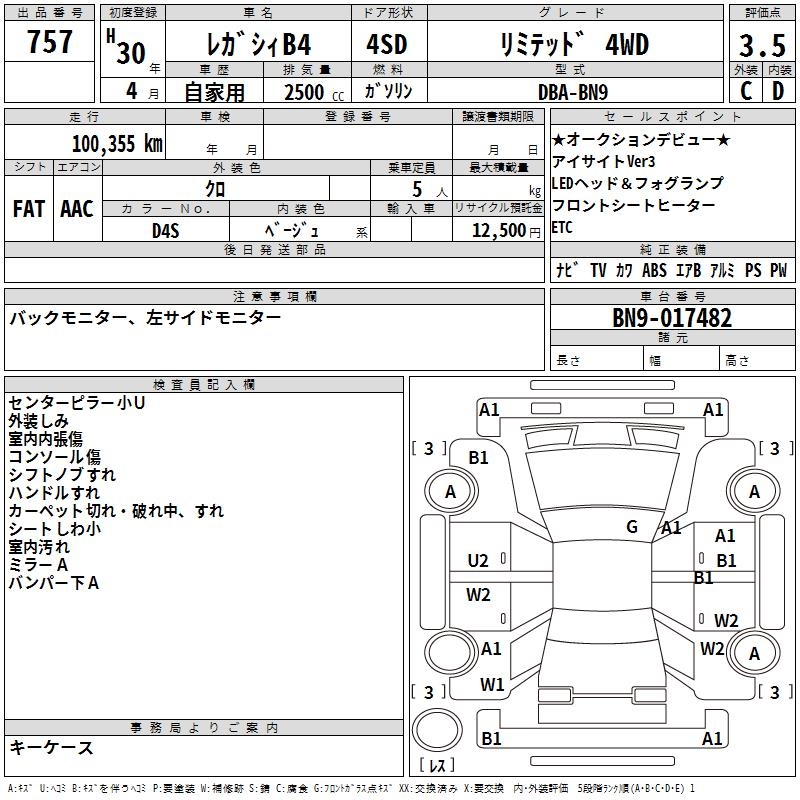 SUBARU LEGACY B4 - лот 757