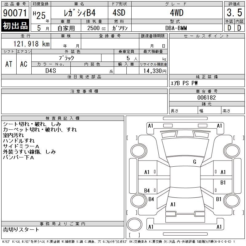 SUBARU LEGACY B4 - лот 90071