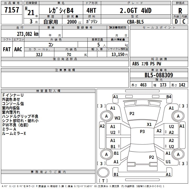 Все аукционы SUBARU LEGACY B4