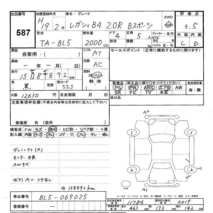 SUBARU LEGACY B4 - лот 587