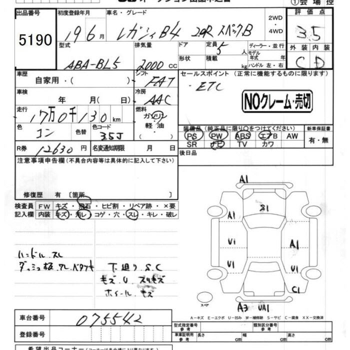 SUBARU LEGACY B4 - лот 5190