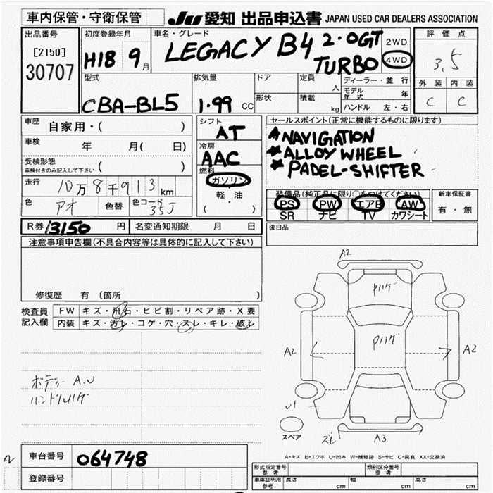 SUBARU LEGACY B4 - лот 30707