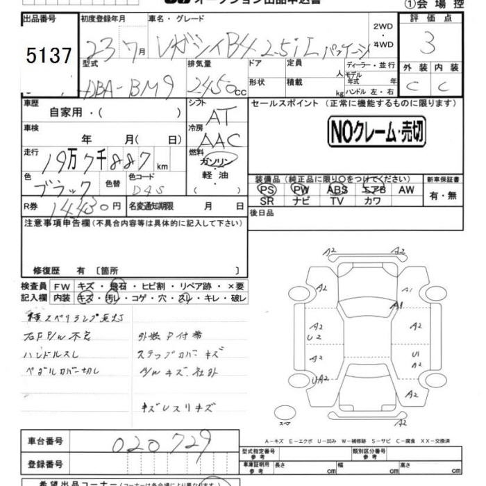 SUBARU LEGACY B4 - лот 5137