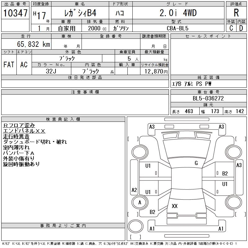 SUBARU LEGACY B4 - лот 10347