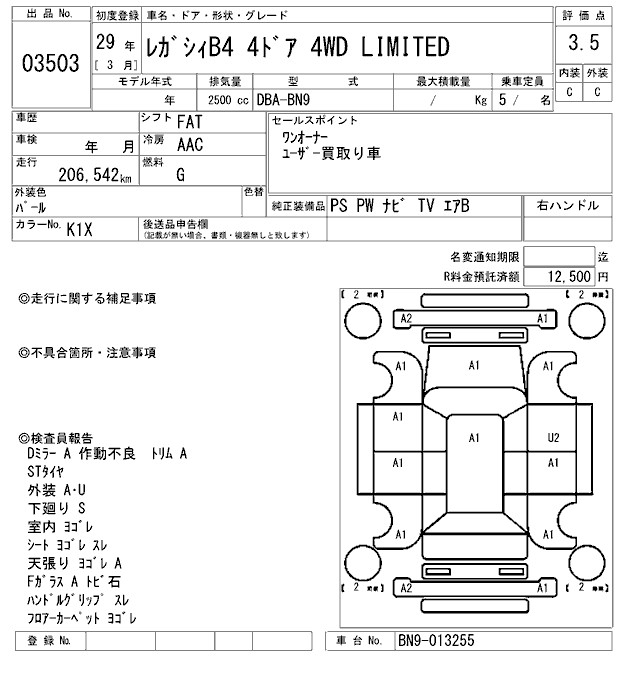 SUBARU LEGACY B4 - лот 3503