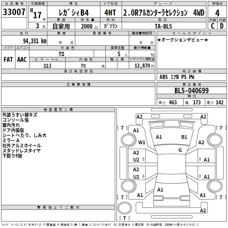 SUBARU LEGACY B4 - лот 33007