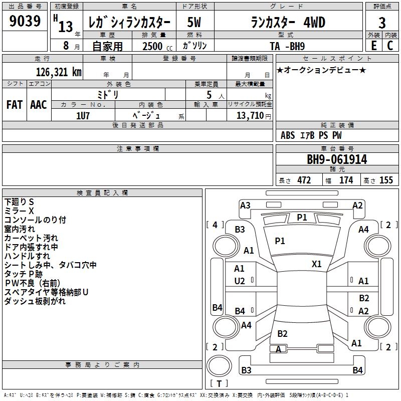 SUBARU LEGACY LANCASTER - лот 9039