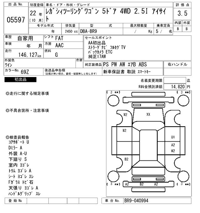 SUBARU LEGACY TOURING WAGON - лот 5597