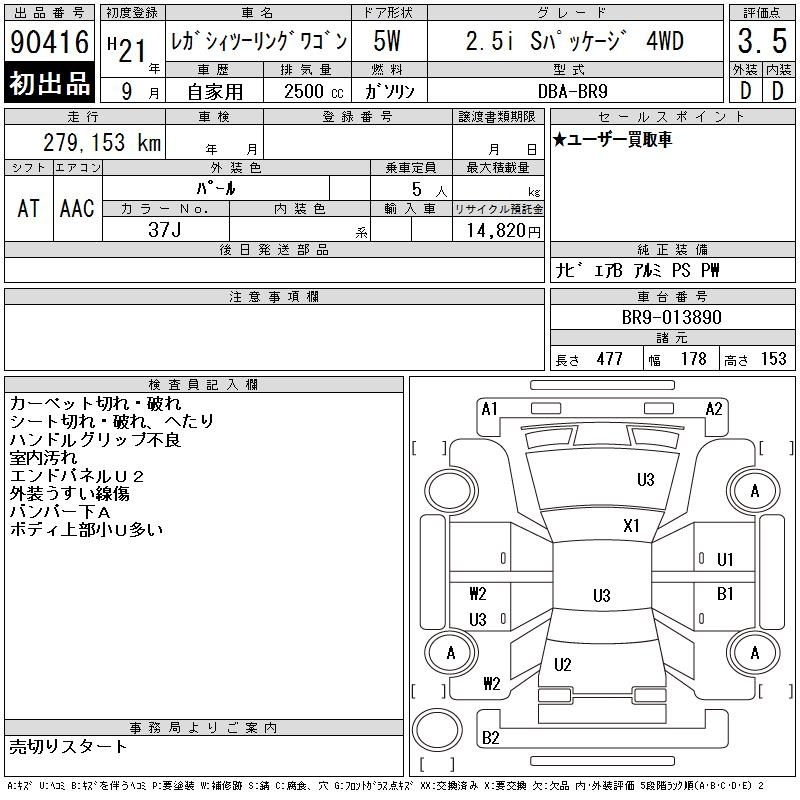 Все аукционы SUBARU LEGACY TOURING WAGON