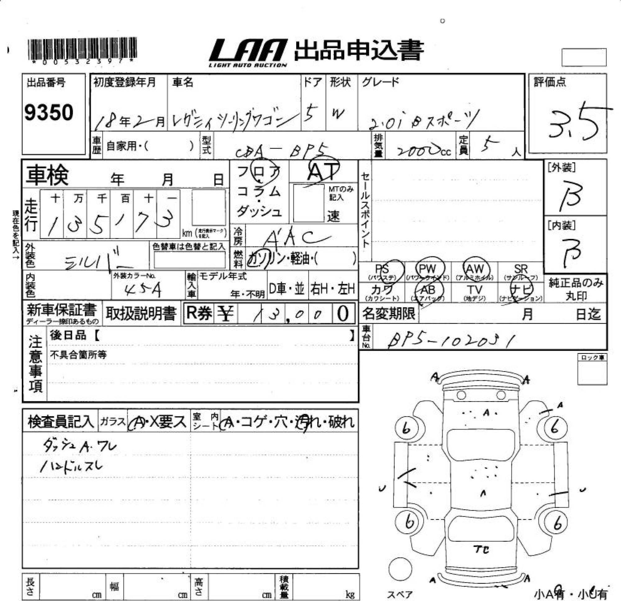Все аукционы SUBARU LEGACY TOURING WAGON