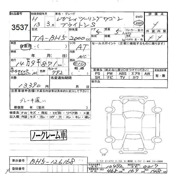 Все аукционы SUBARU LEGACY TOURING WAGON