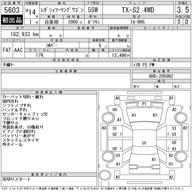 Все аукционы SUBARU LEGACY TOURING WAGON