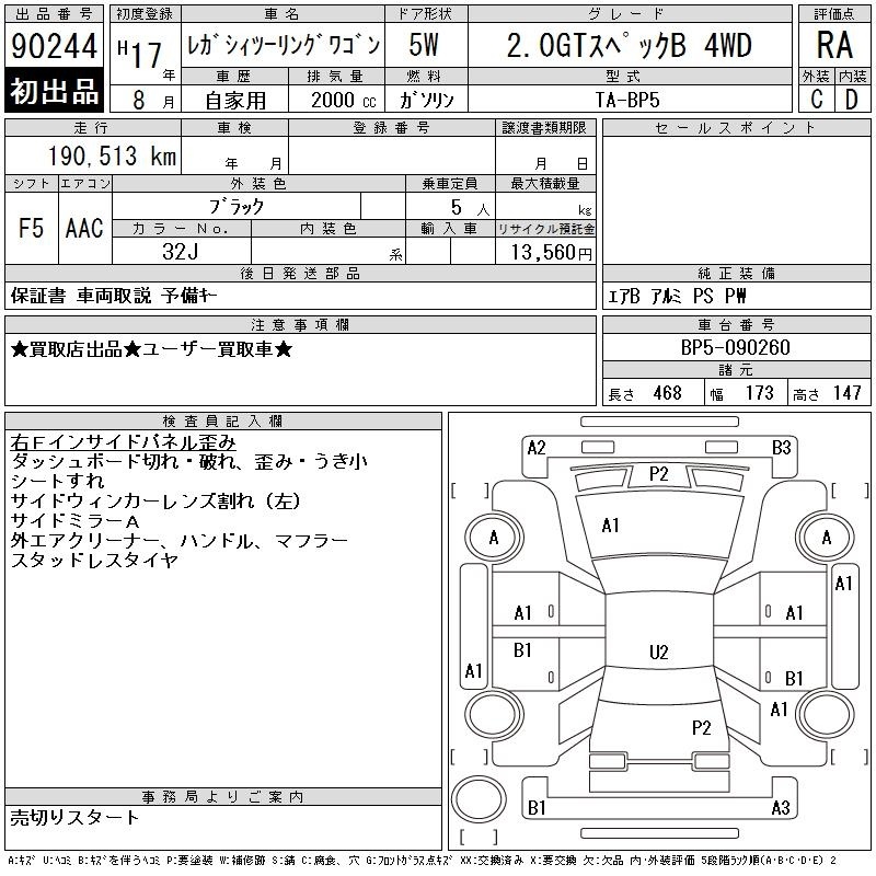 Все аукционы SUBARU LEGACY TOURING WAGON
