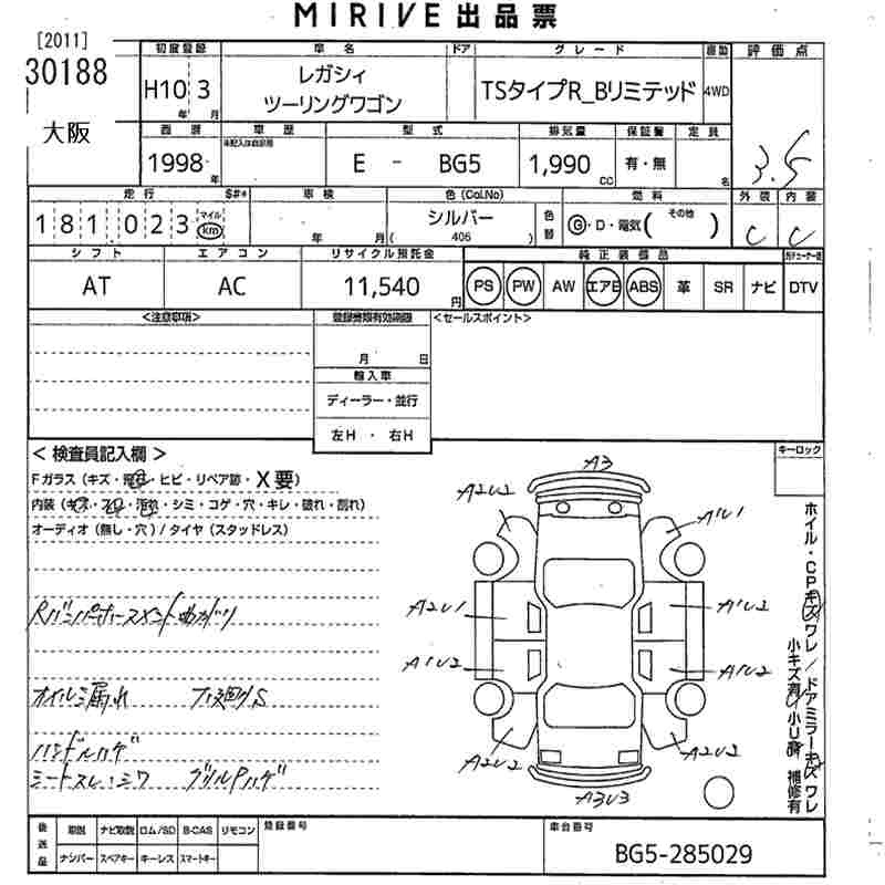 SUBARU LEGACY TOURING WAGON - лот 30188