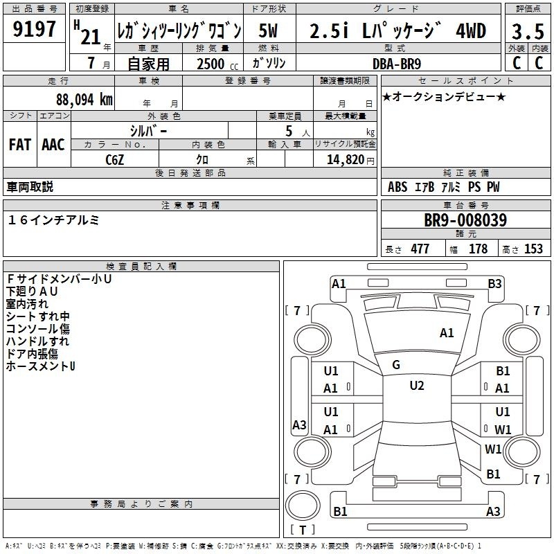 Все аукционы SUBARU LEGACY TOURING WAGON