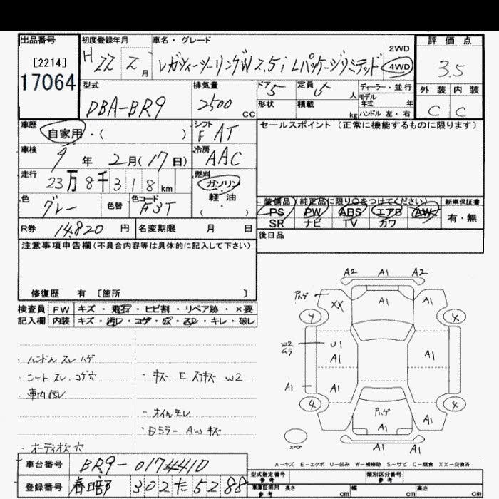 Все аукционы SUBARU LEGACY TOURING WAGON