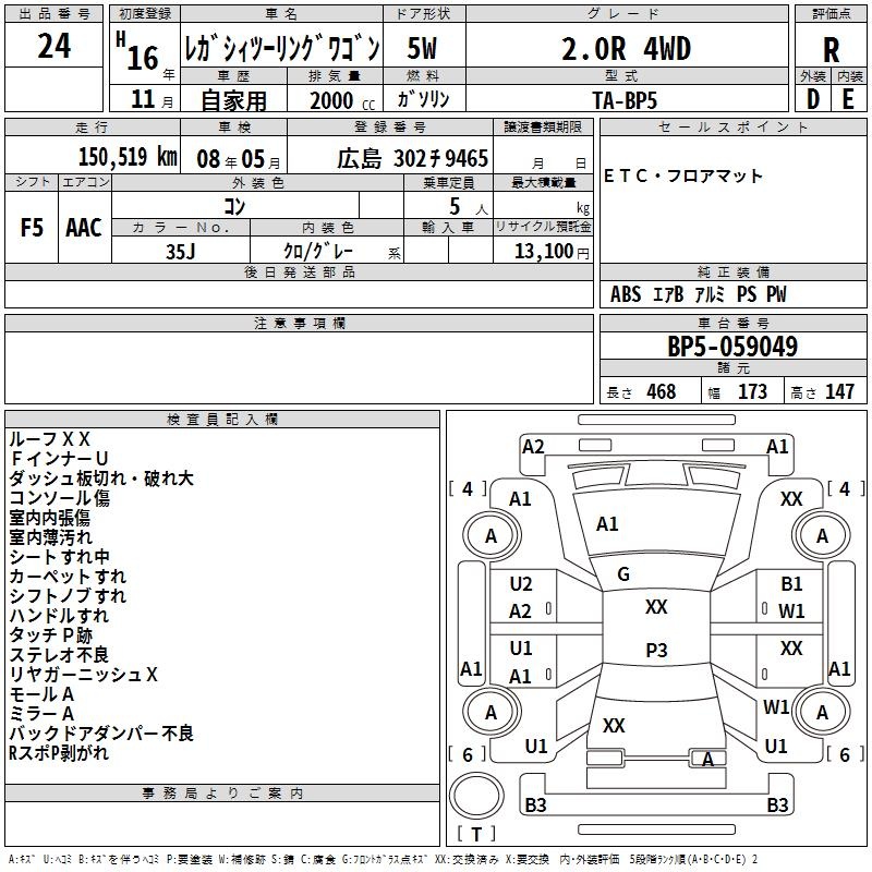 Все аукционы SUBARU LEGACY TOURING WAGON