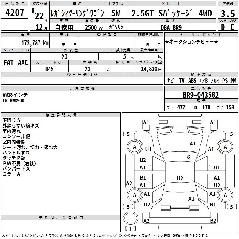 Все аукционы SUBARU LEGACY TOURING WAGON