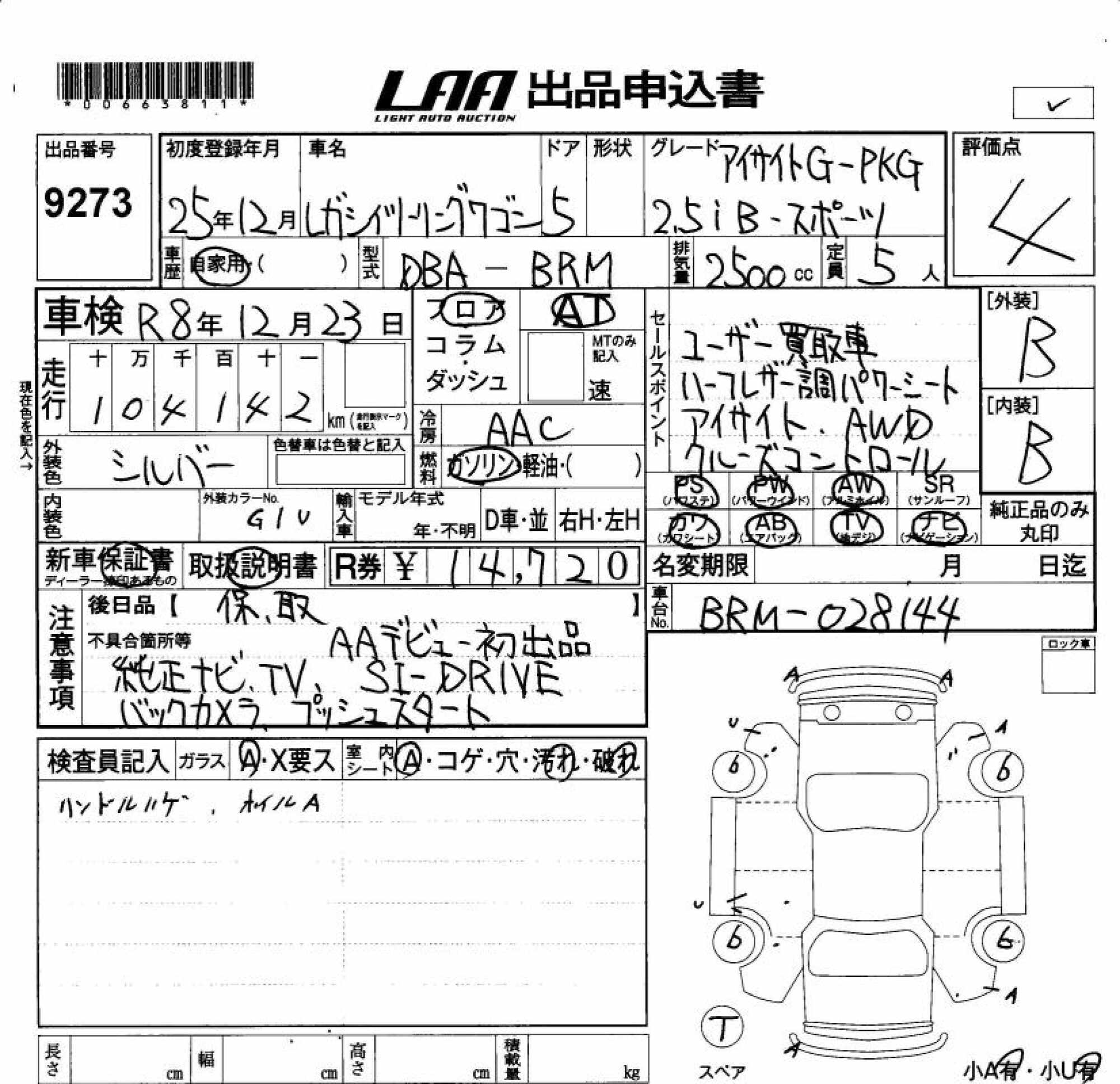 SUBARU LEGACY TOURING WAGON - лот 9273