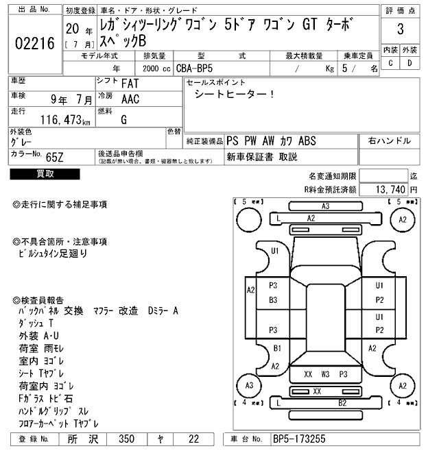 Все аукционы SUBARU LEGACY TOURING WAGON