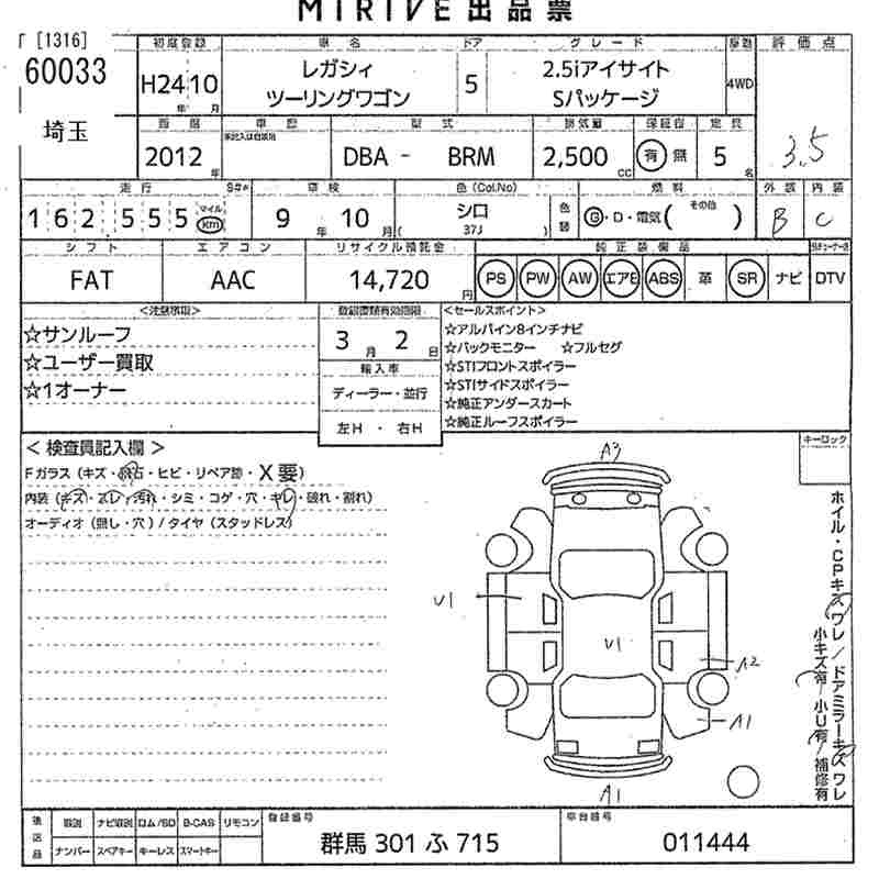 Все аукционы SUBARU LEGACY TOURING WAGON