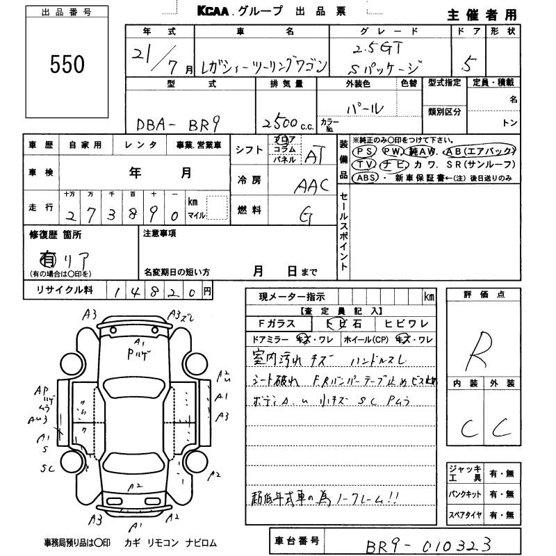 Все аукционы SUBARU LEGACY TOURING WAGON