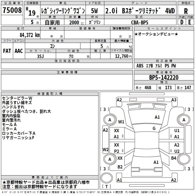 Все аукционы SUBARU LEGACY TOURING WAGON