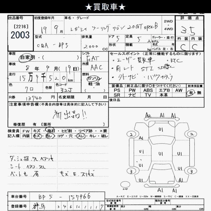 Все аукционы SUBARU LEGACY TOURING WAGON