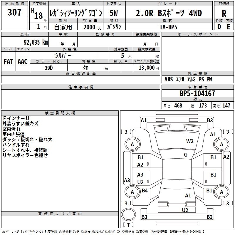 SUBARU LEGACY TOURING WAGON - лот 307