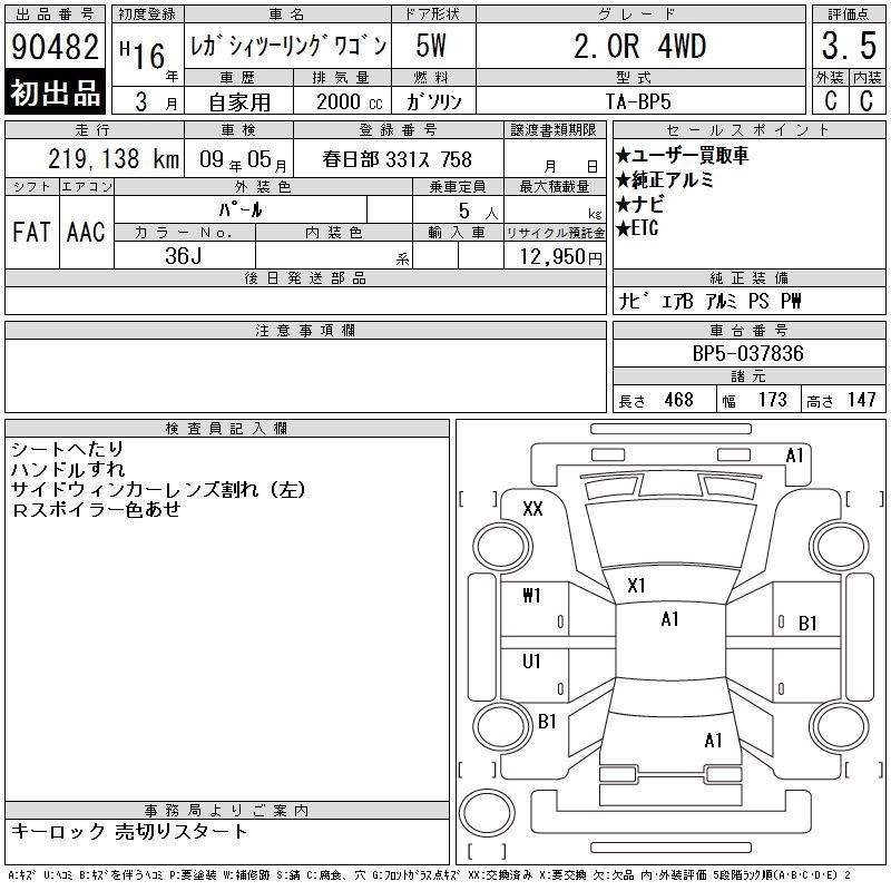 Все аукционы SUBARU LEGACY TOURING WAGON