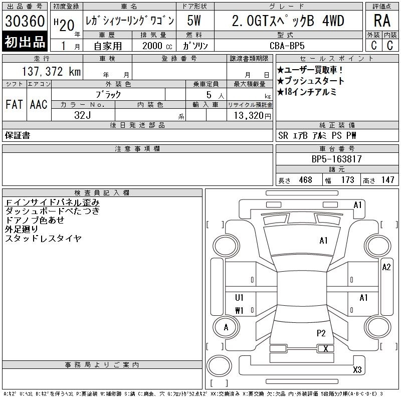 Все аукционы SUBARU LEGACY TOURING WAGON