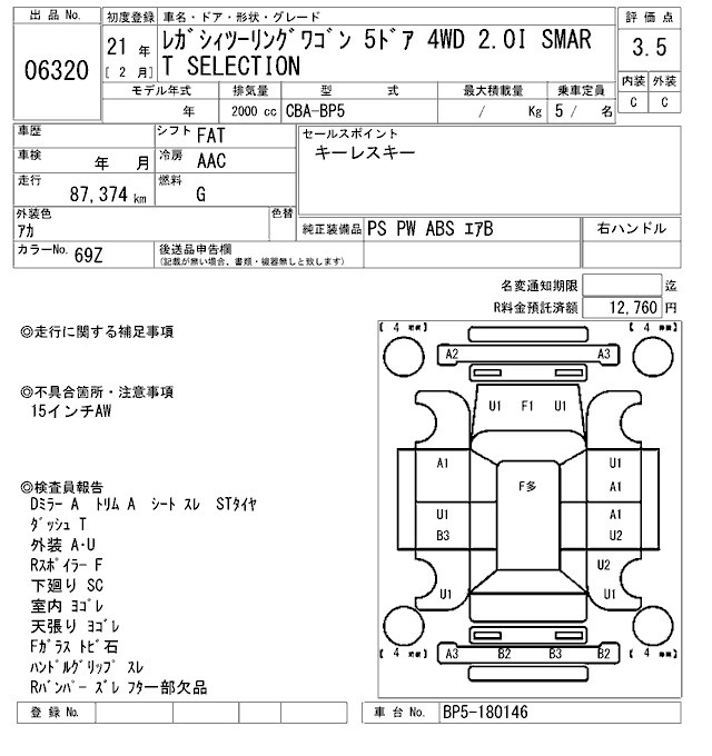 Все аукционы SUBARU LEGACY TOURING WAGON