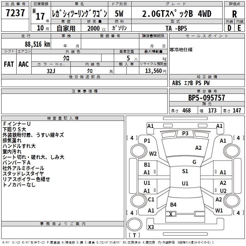 Все аукционы SUBARU LEGACY TOURING WAGON