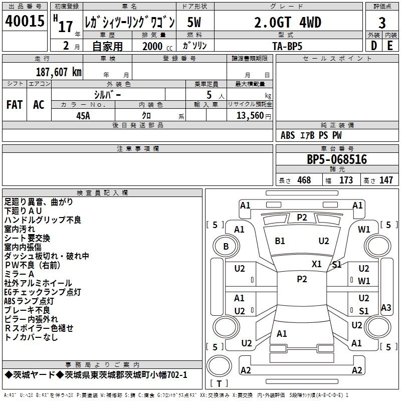 Все аукционы SUBARU LEGACY TOURING WAGON