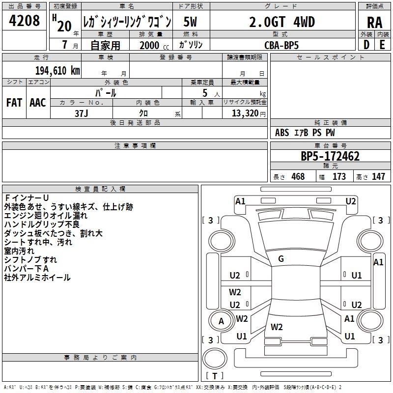 Все аукционы SUBARU LEGACY TOURING WAGON