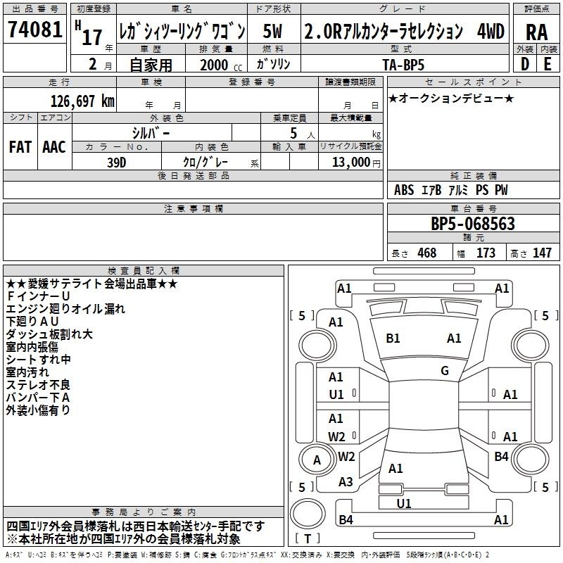 Все аукционы SUBARU LEGACY TOURING WAGON