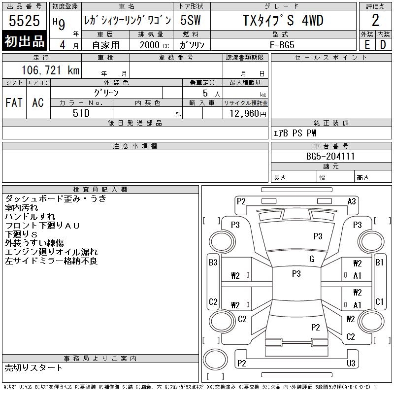 SUBARU LEGACY TOURING WAGON - лот 5525
