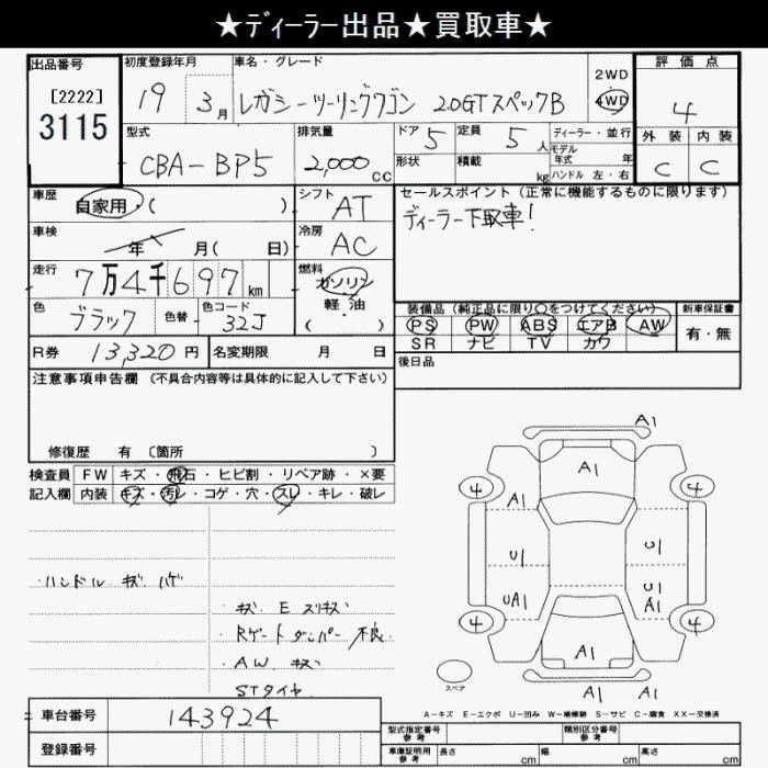 Все аукционы SUBARU LEGACY TOURING WAGON