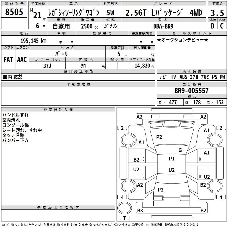 Все аукционы SUBARU LEGACY TOURING WAGON