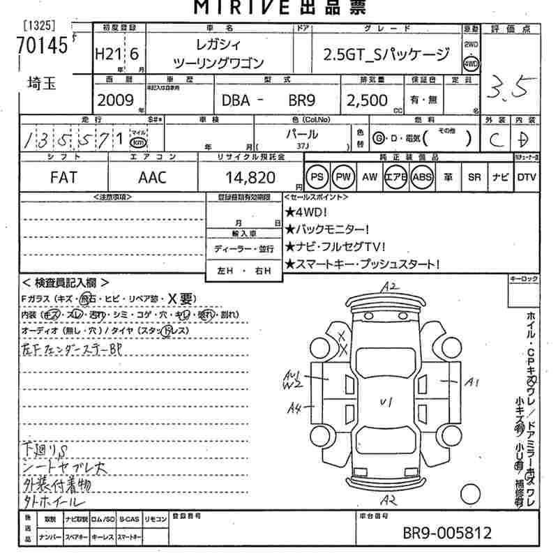 Все аукционы SUBARU LEGACY TOURING WAGON